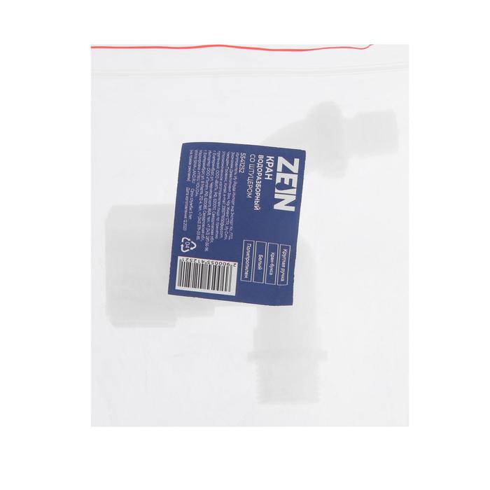 Кран водоразборный со штуцером ZEIN Z9820, 1/2", кругая ручка, PP, кран-букса, белый — Характеристики