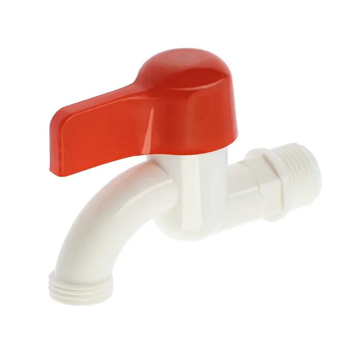 Кран водоразборный ZEIN, 1/2", плоская красная ручка, PP, кран-букса, белый — Характеристики