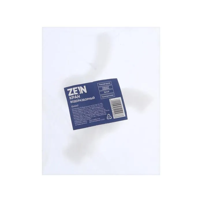 Кран водоразборный ZEIN, 1/2", с плоской ручкой, PP, шаровой механизм, белый — Характеристики
