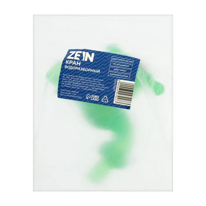 Кран водоразборный ZEIN, 1/2", со штуцером, с крестовой ручкой, PP, зеленый — Характеристики