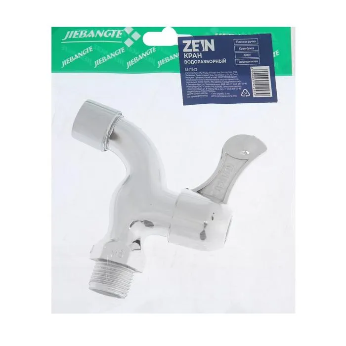 Кран водоразборный со штуцером ZEIN, 1/2", с плоской ручкой, PP, кран-букса, хром