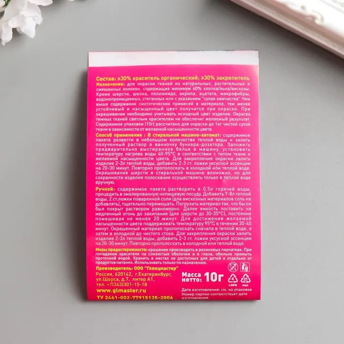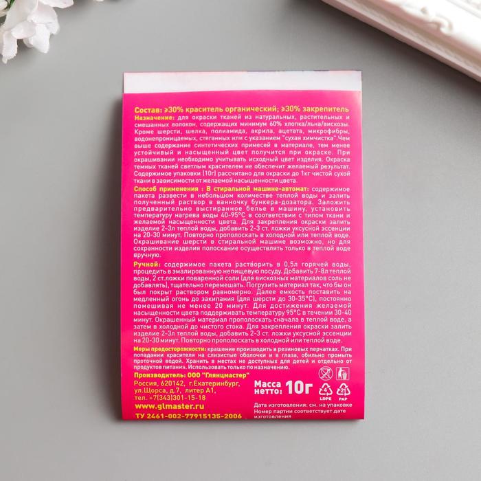 Краситель для ткани «ДЖИНСА» бордо, 10 г — Характеристики