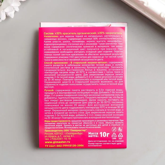 Краситель "ДЖИНСА" рубин, 10 гр — Характеристики