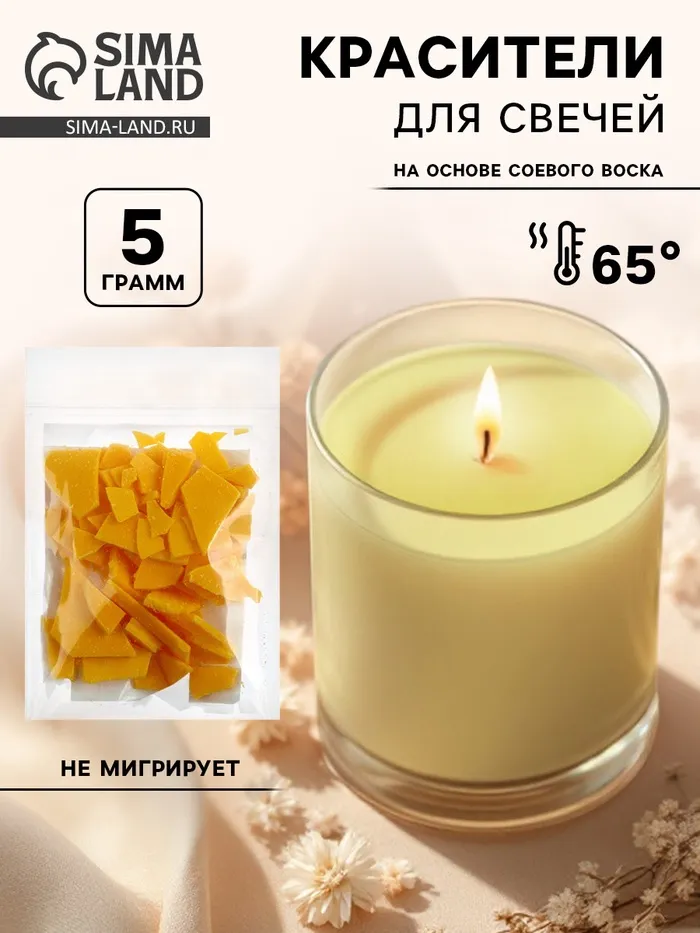 Краситель для свечей на основе соевого воска — это удобный инструмент для создания свечей с нежно-жёлтым цветом. Благодаря натуральной основе, он легко смешивается с воском, равномерно окрашивая его. Краситель подходит как для новичков, так и для опытных мастеров свечного дела.