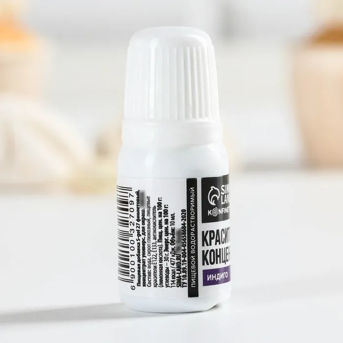 Краситель пищевой гелевый водорастворимый для десертов: индиго, 10 мл. — Характеристики