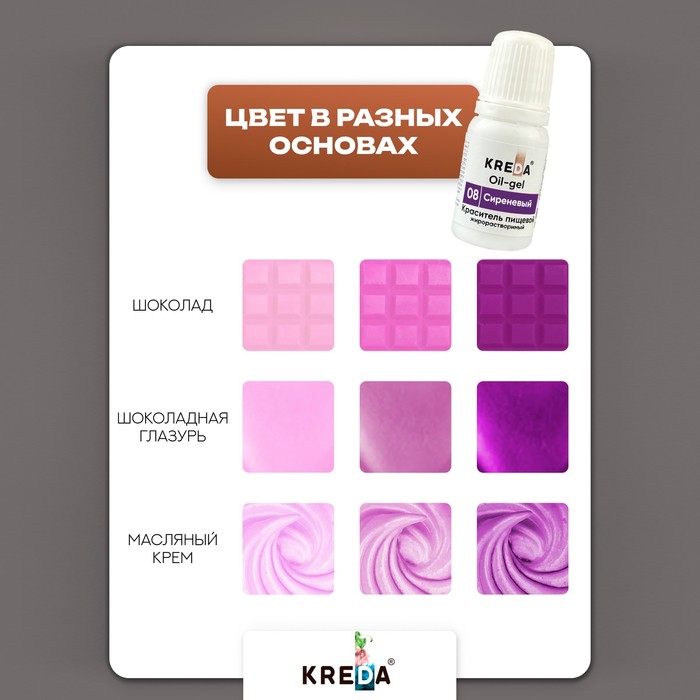 Жирорастворимые пищевые красители Kreda Bio Oil-gel обладают широким спектром цветов, имеют высокую красящую способность и экономичны в использовании. Удобный дозатор позволяет чётко отмерять нужное количество капель, а благодаря гелевой основе красителя окрашиваемый материал не меняет консистенцию. Идеально подходят для десертов, мороженного, фруктового льда, кремов и соусов