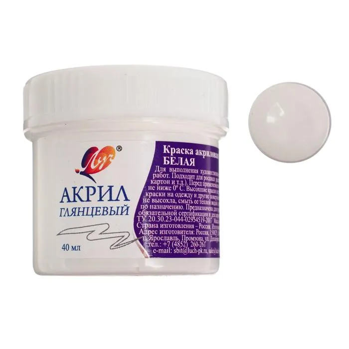 Краска акриловая 40 мл "Луч" белая — Характеристики