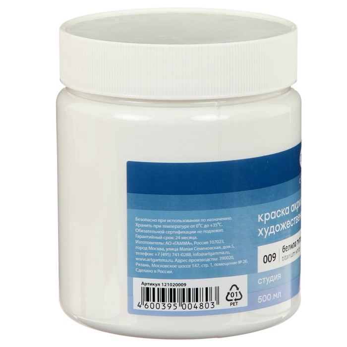 Краска акриловая Гамма "Студия", 500 мл, №009 белила титановые — Характеристики
