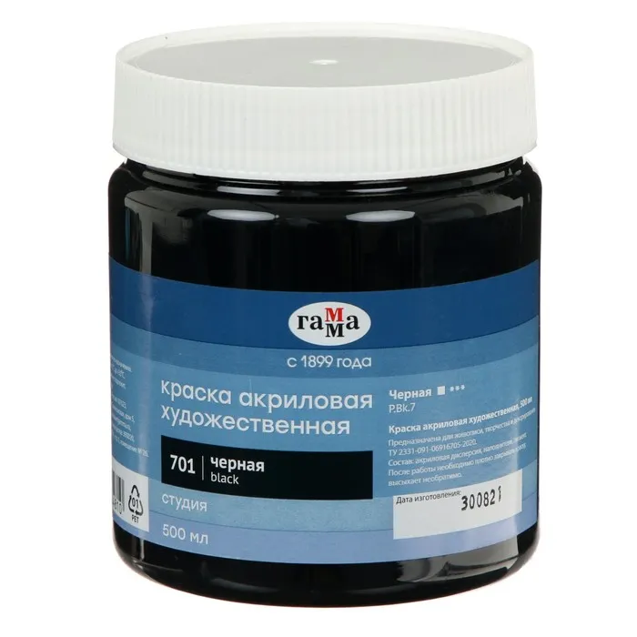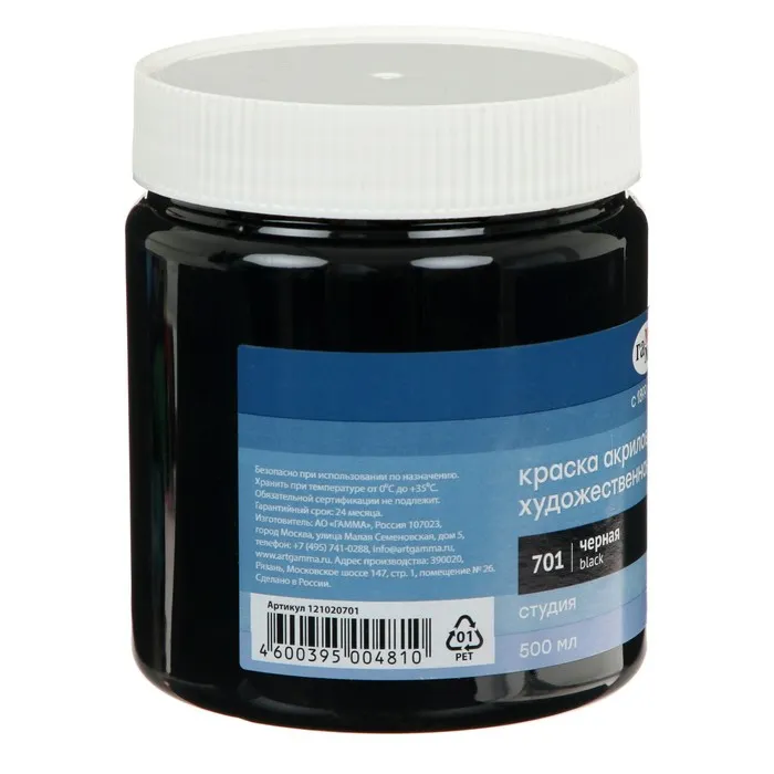 Краска акриловая Гамма "Студия", 500 мл, №701 чёрная — Характеристики