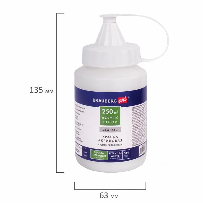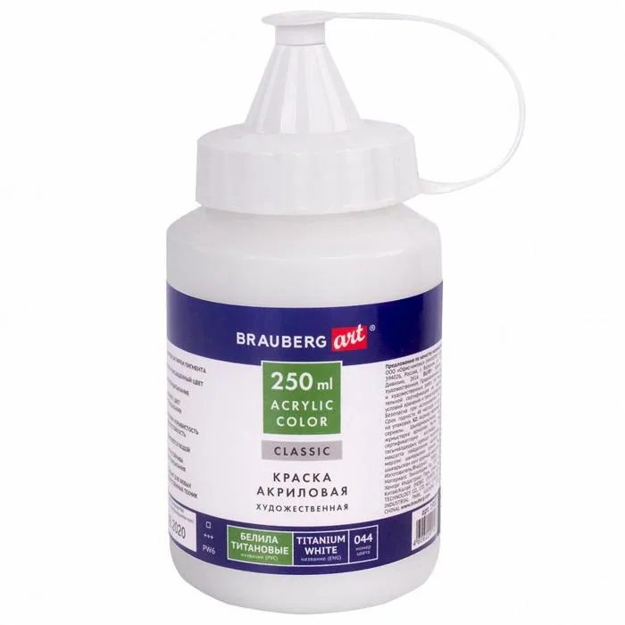 Краска акриловая художественная 250 мл, BRAUBERG ART CLASSIC, "Белила титановые" — Характеристики