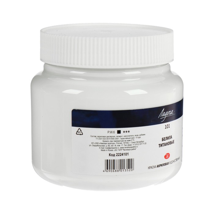 Краска акриловая художественная 500 мл, ЗХК "Ладога", белила титановые, 2224101 — Характеристики