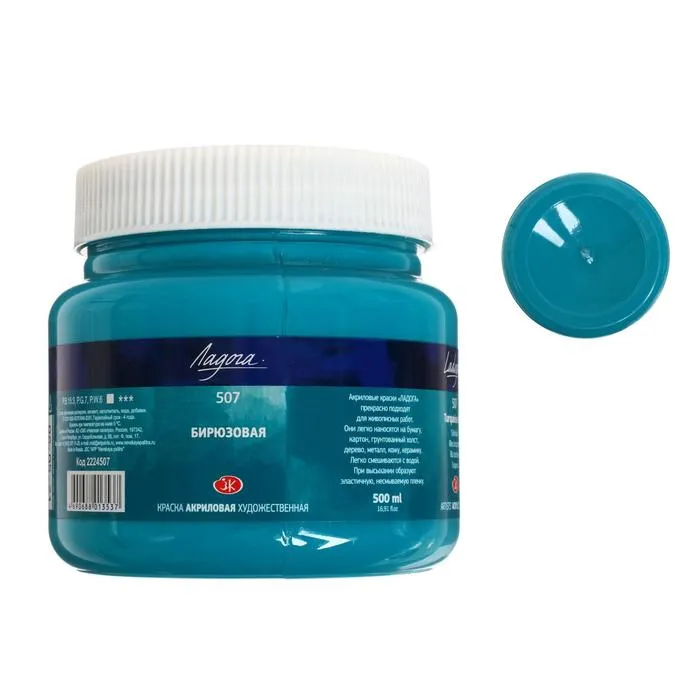 Краска акриловая художественная 500 мл, ЗХК "Ладога", бирюзовая, 2224507 — Характеристики