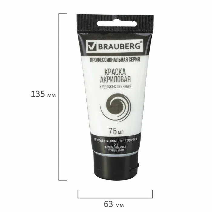 Краска акриловая художественная туба 75 мл, BRAUBERG "Белила титановые" — Характеристики
