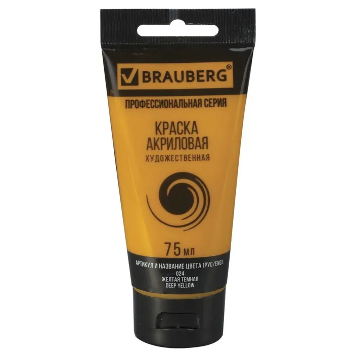 Краска акриловая художественная туба 75 мл, BRAUBERG "Жёлтая тёмная" — Характеристики