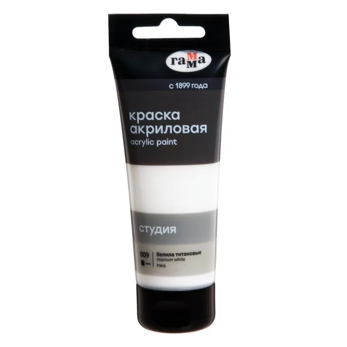 Краска акриловая художественная туба 75 мл, Гамма "Студия" №009 белила титановые — Характеристики