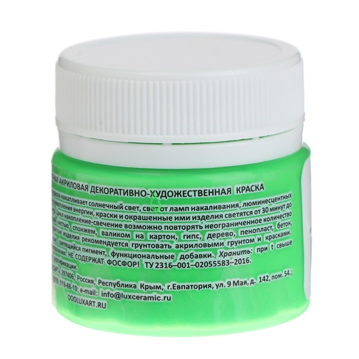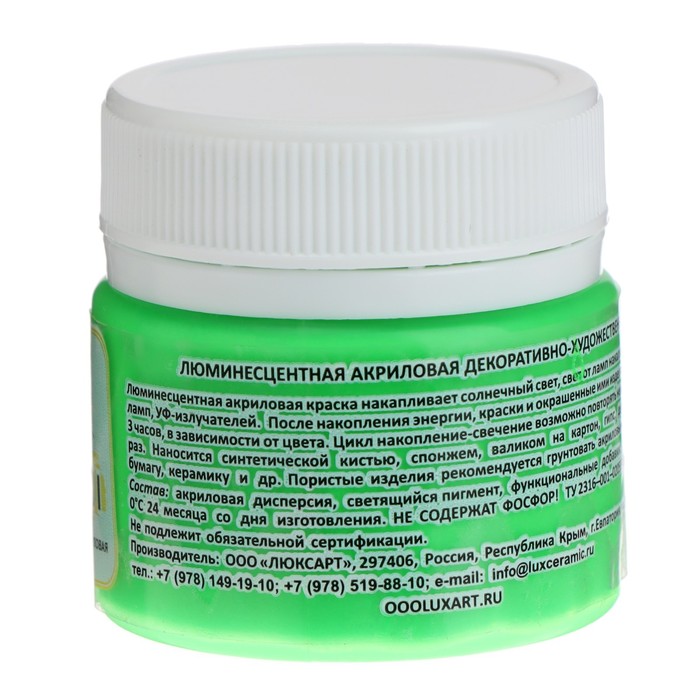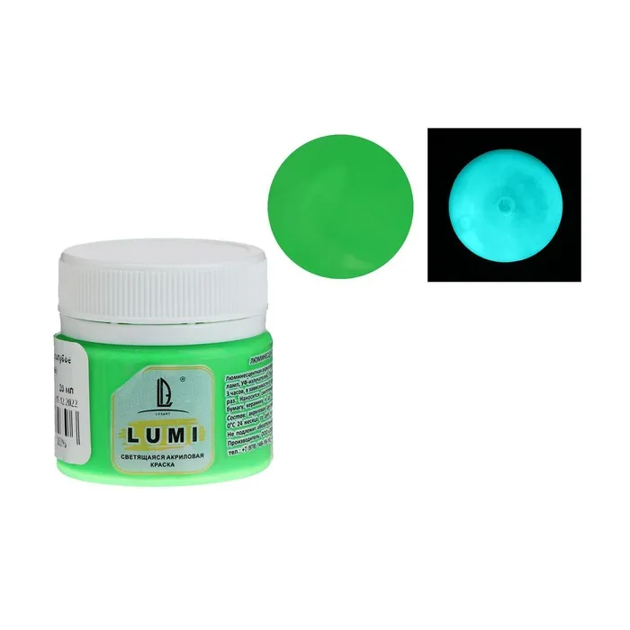 Краска акриловая люминесцентная (светящаяся в темноте), LUXART Lumi, 20 мл, зелёный, небесно-голубое свечение (L7V20) — Характеристики