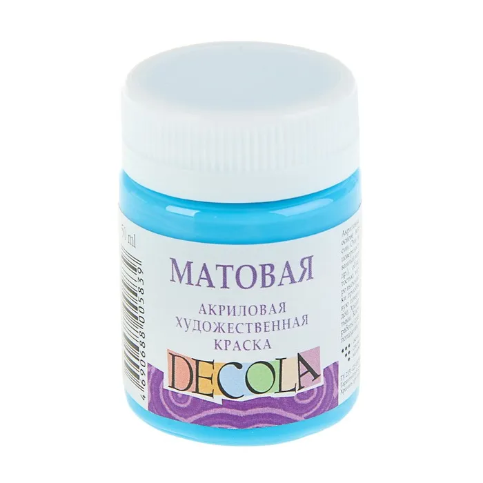 Матовые пастельные краски "Decola" на основе водной акриловой дисперсии легко наносятся на любую поверхность: бумагу, картон, грунтованный холст, дерево, металл, кожу и др.). Идеально подходят для создания декоративных работ в актуальных стилях "винтаж" и "шебби-шик".