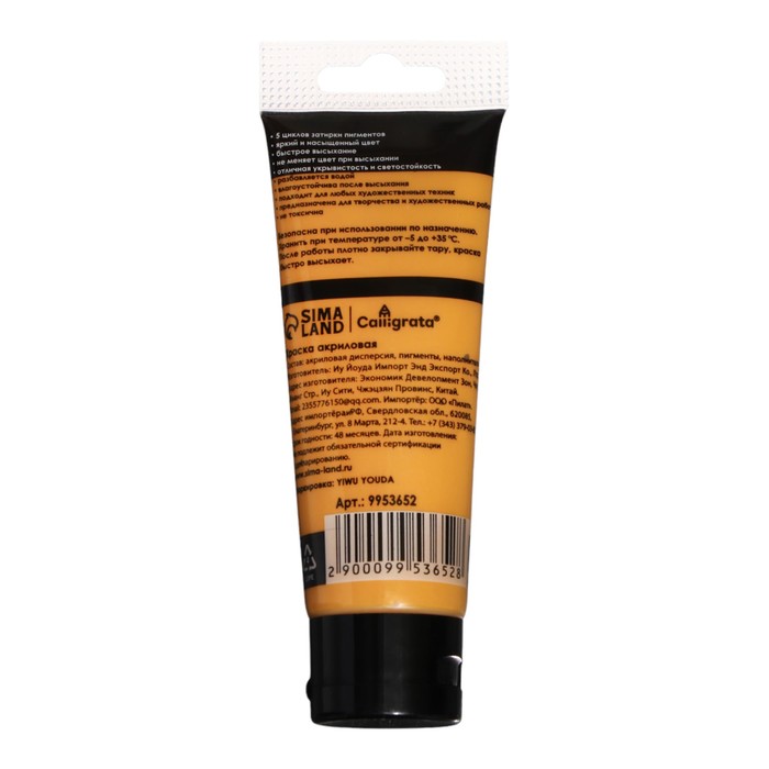 Краска акриловая матовая в тубе 75мл CALLIGRATA, КМ003, Охра желтая, пантон 131С — Характеристики