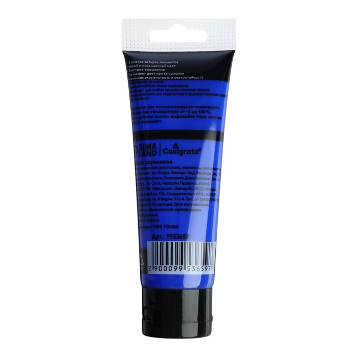 Краска акриловая матовая в тубе 75мл CALLIGRATA, КМ008, Ультрамарин, пантон 2738С — Характеристики