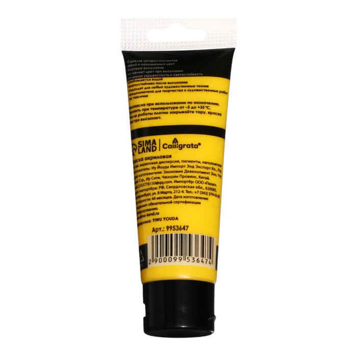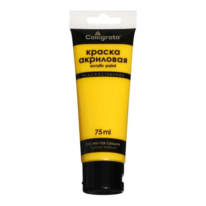 Краска акриловая матовая в тубе 75мл CALLIGRATA, КМ014, Желтая средняя, пантон 116С — Характеристики