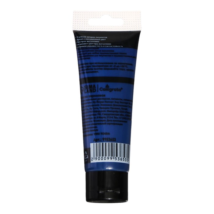 Краска акриловая матовая в тубе 75мл CALLIGRATA, КМ024, Прусская синяя, пантон 2768С — Характеристики