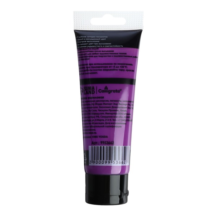 Краска акриловая матовая в тубе 75мл CALLIGRATA, КМ033, Фиолетовая средняя, пантон 520С — Характеристики