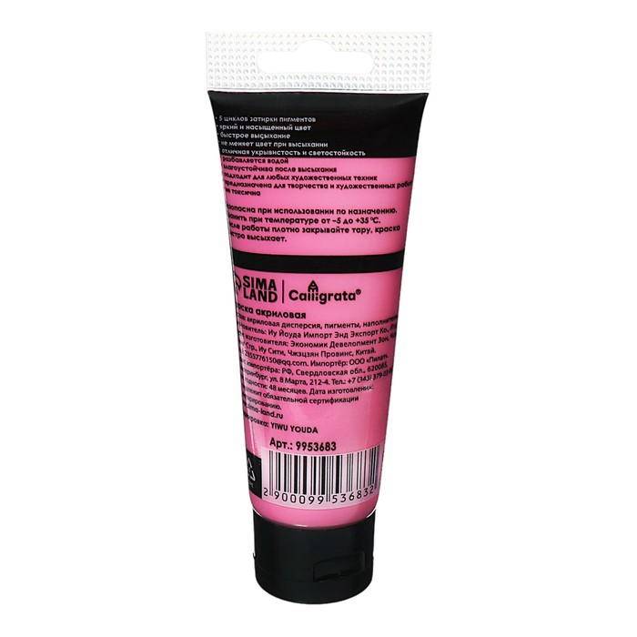 Краска акриловая матовая в тубе 75мл CALLIGRATA, КМ038, Пурпурный, пантон 211С — Характеристики