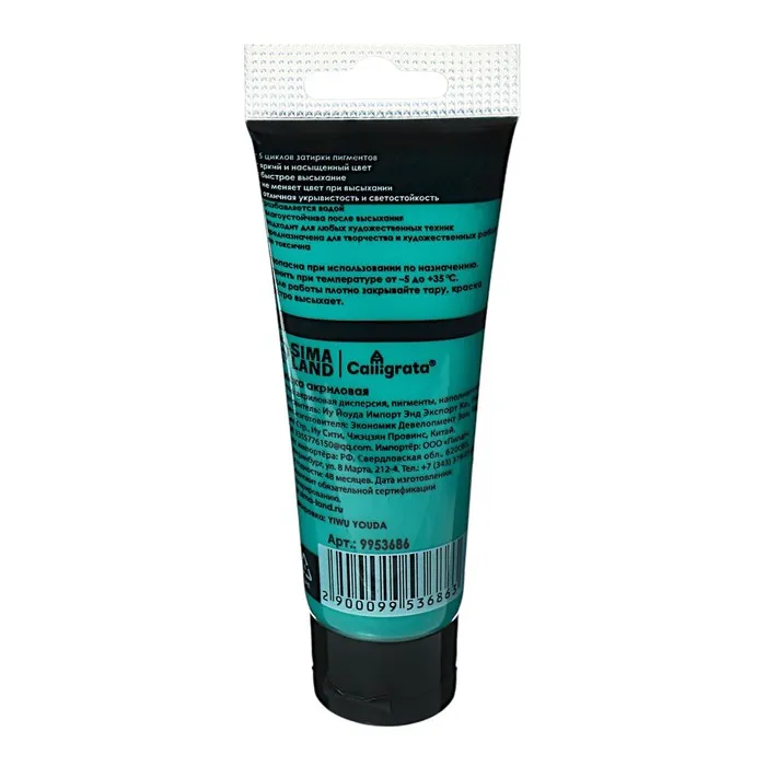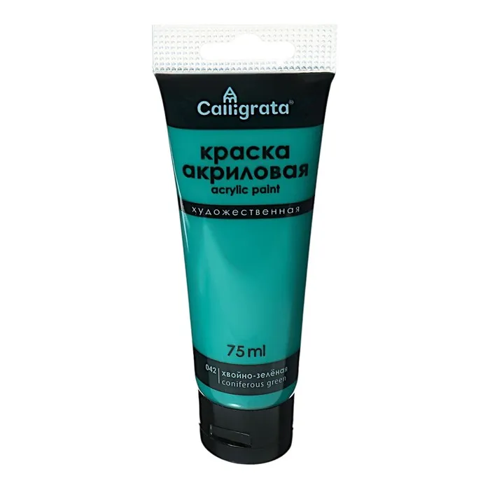 Краска акриловая матовая в тубе 75мл CALLIGRATA, КМ042, Хвойно-зеленый, пантон 329С — Характеристики