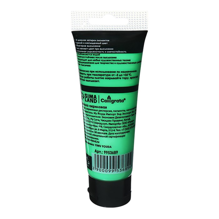 Краска акриловая матовая в тубе 75мл CALLIGRATA, КМ045, Бледно-зеленый, пантон 7479С — Характеристики