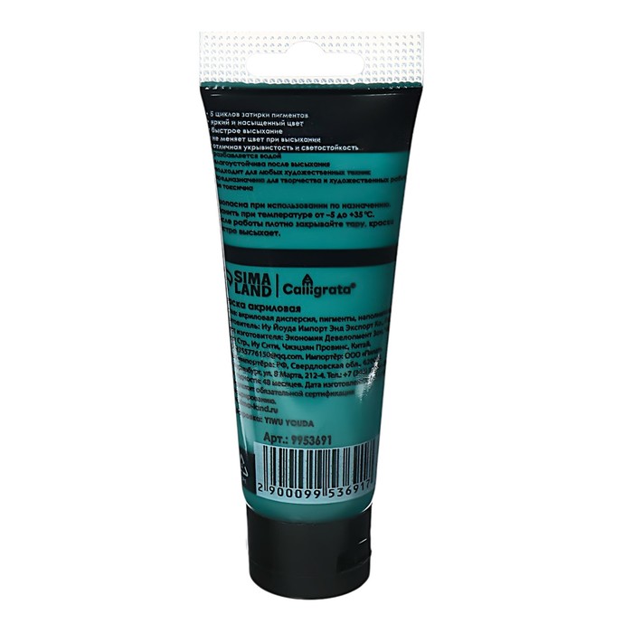 Краска акриловая матовая в тубе 75мл CALLIGRATA, КМ047, Зеленая "ФЦ", пантон 7722С — Характеристики