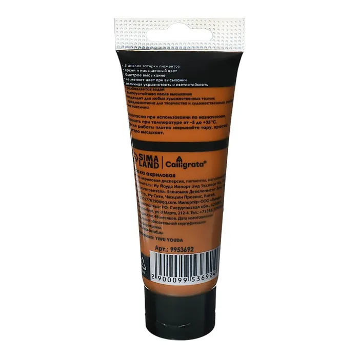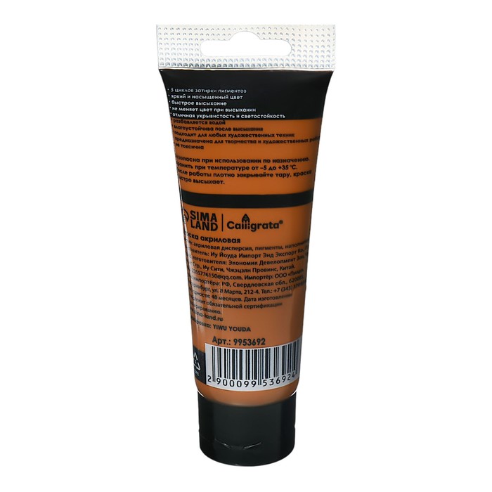 Краска акриловая матовая в тубе 75мл CALLIGRATA, КМ049, коричневый марс, пантон 731С — Характеристики