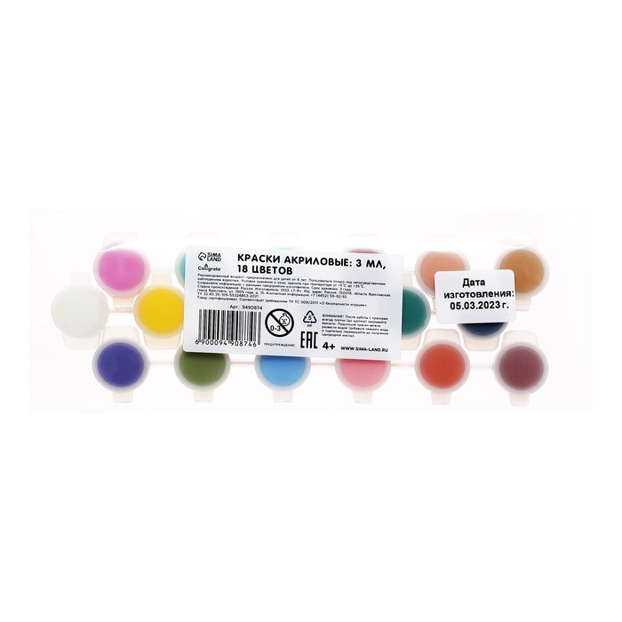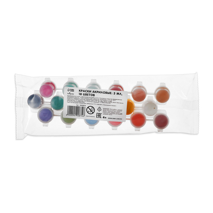 Краска акриловая, набор 18 цветов х 3 мл, Calligrata, морозостойкие, в пакете — Характеристики