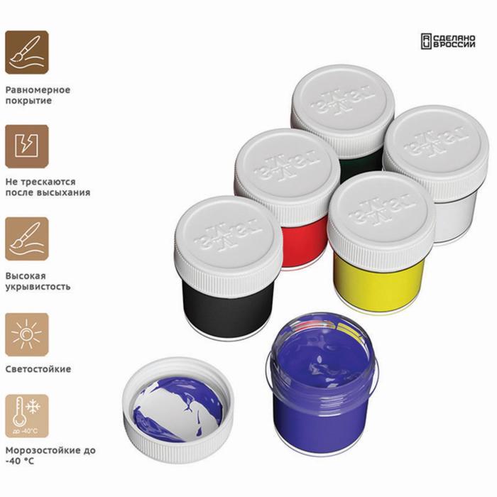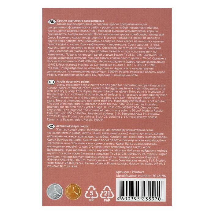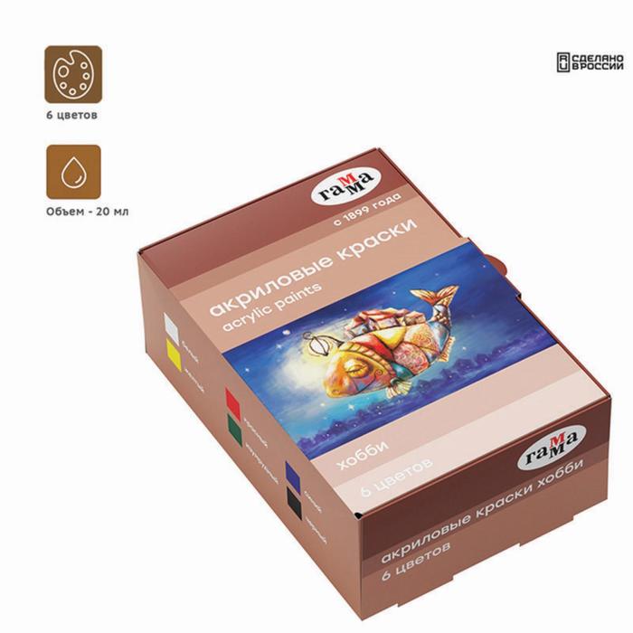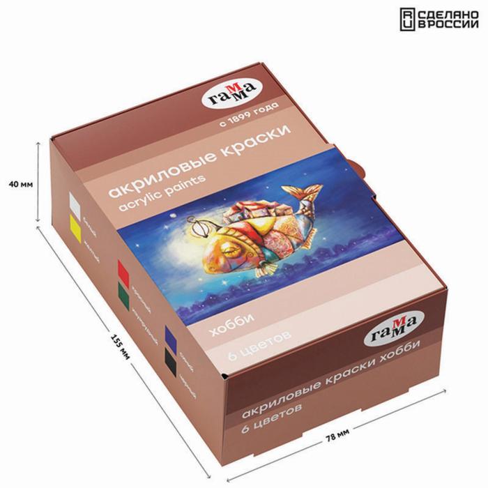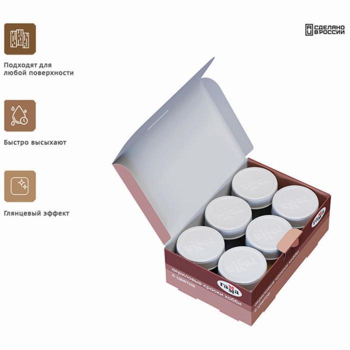 Краска акриловая, набор 6 цветов х 20 мл, Гамма "Хобби", морозостойкая, глянцевая, 3012196 — Характеристики