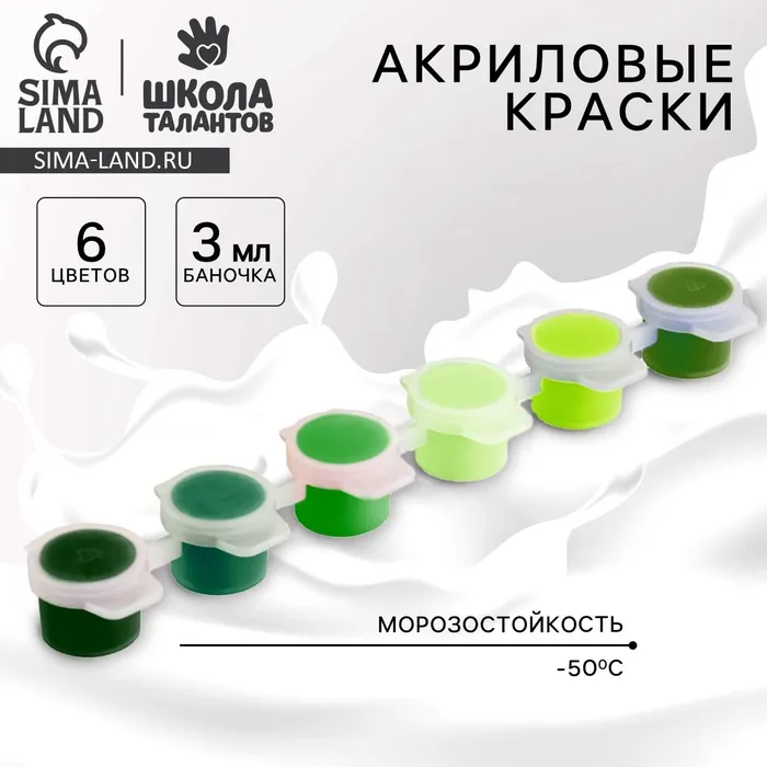 Краска акриловая «Приятная зелень», 6 цветов — Характеристики