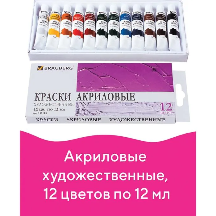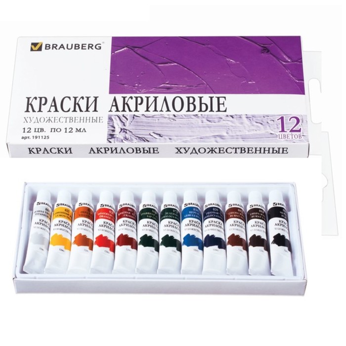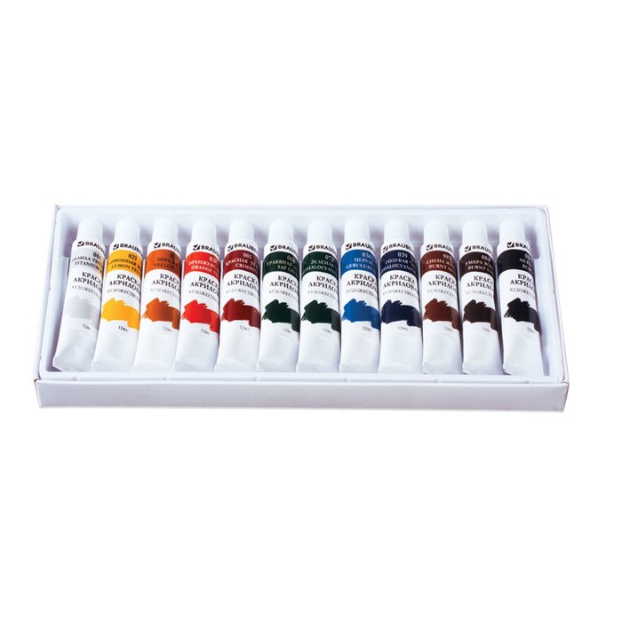 Краска акриловая в тубе, набор 12 цветов х 12 мл, BRAUBERG ART DEBUT, 191125 — Характеристики