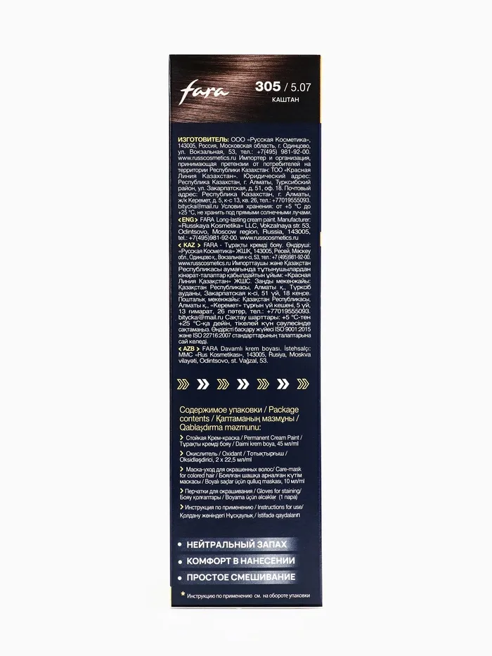 Краска для волос FARA NC тон 305/5.07 - Каштан, 116 г — Характеристики
