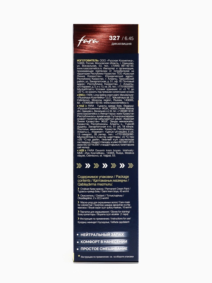 Краска для волос FARA NC тон 327/6.45 - Дикая вишня, 116 г — Характеристики