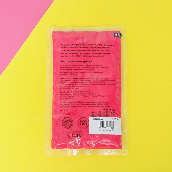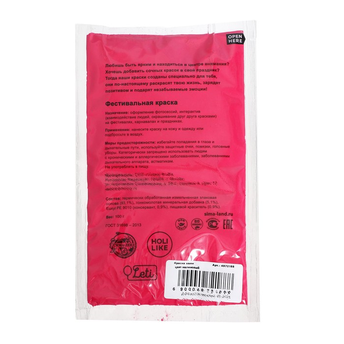Краска холи, цвет малиновый, 100 г — Характеристики