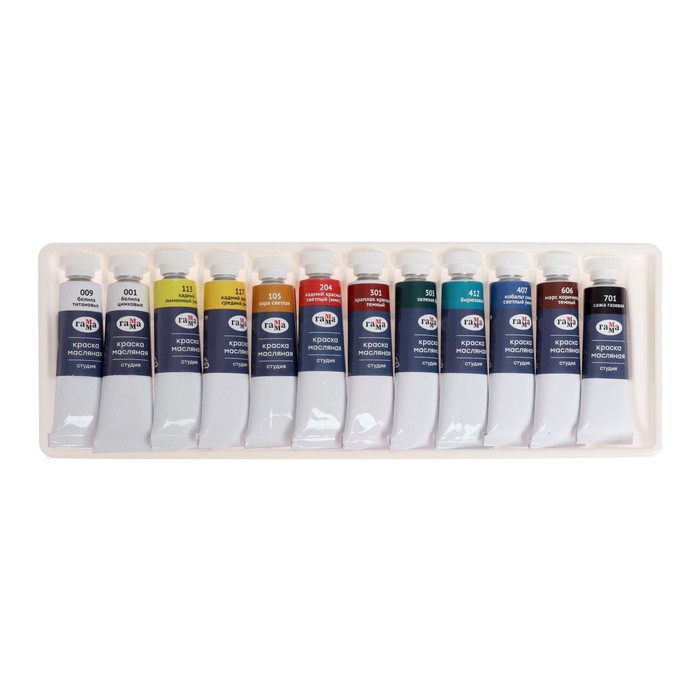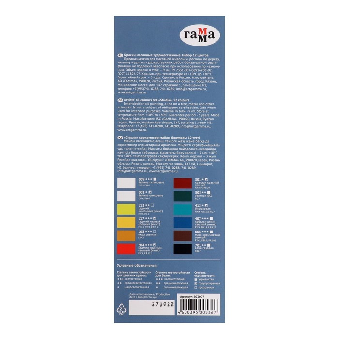 Краска масляная художественная, набор 12 цветов х 9 мл, в тубах, Гамма, "Студия", 203007 — Характеристики