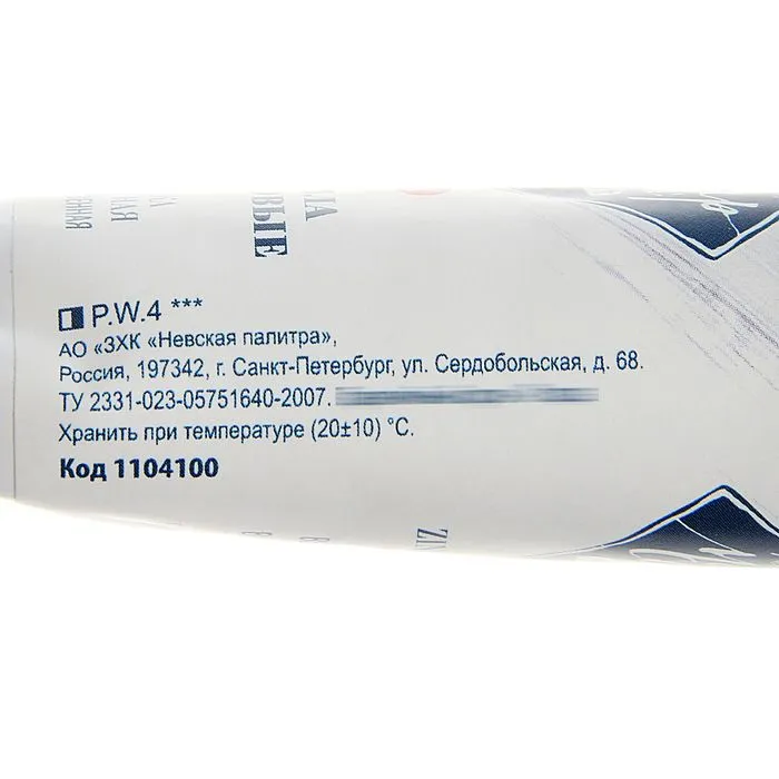 Краска масляная в тубе 46 мл, ЗХК "Мастер-класс", белила цинковые, 1104100 — Характеристики
