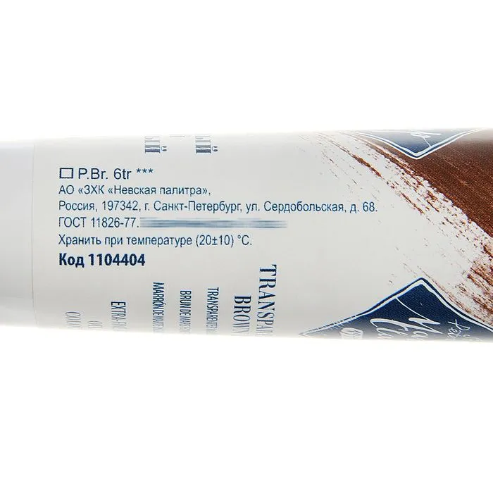 Краска масляная в тубе 46 мл, ЗХК "Мастер-класс", рарс тёмно-коричневый прозрачный, 1104404 — Характеристики
