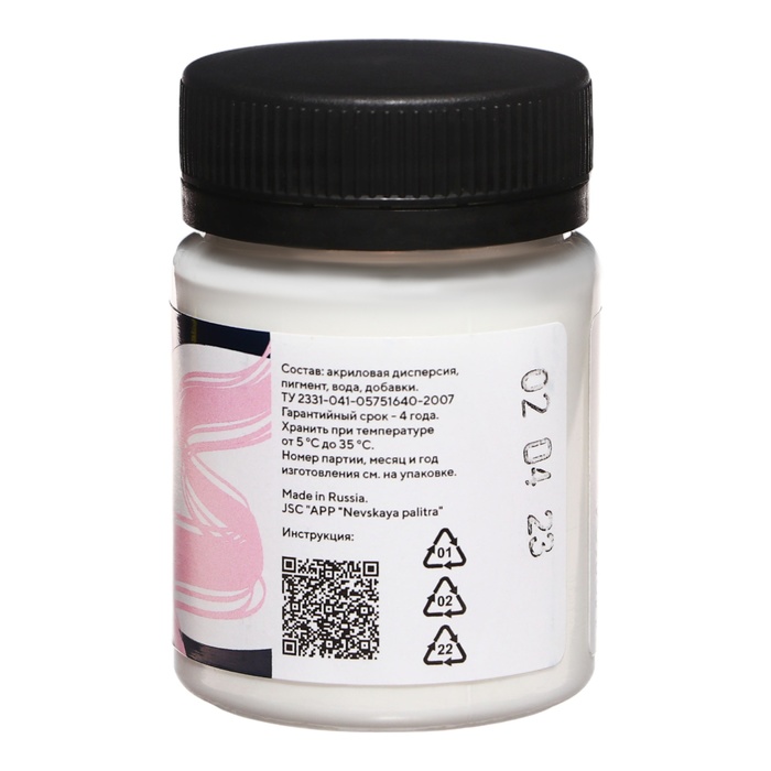 Краска по шелку "Батик", банка 50 мл, ЗХК Decola, Белая 4428104 (акриловая на водной основе) — Характеристики