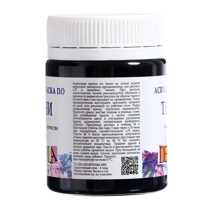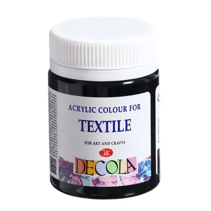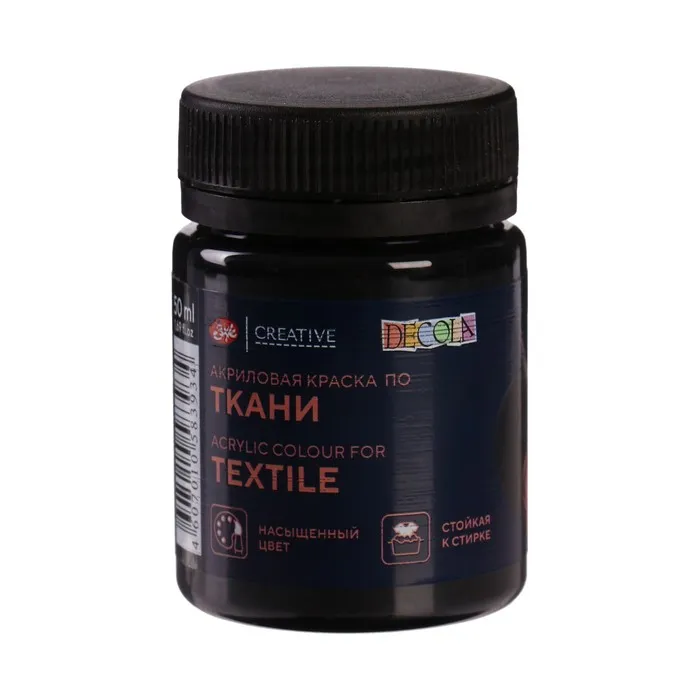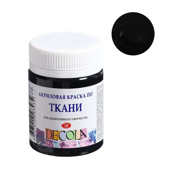 Краска по ткани, банка 50 мл, ЗХК Decola, Чёрная 4128810, (акриловая на водной основе) — Характеристики