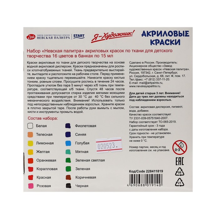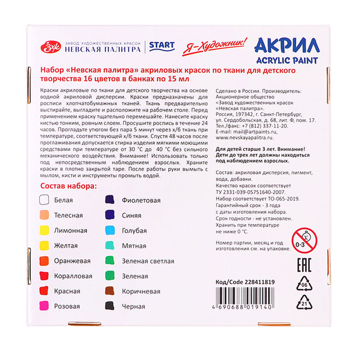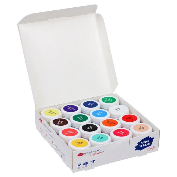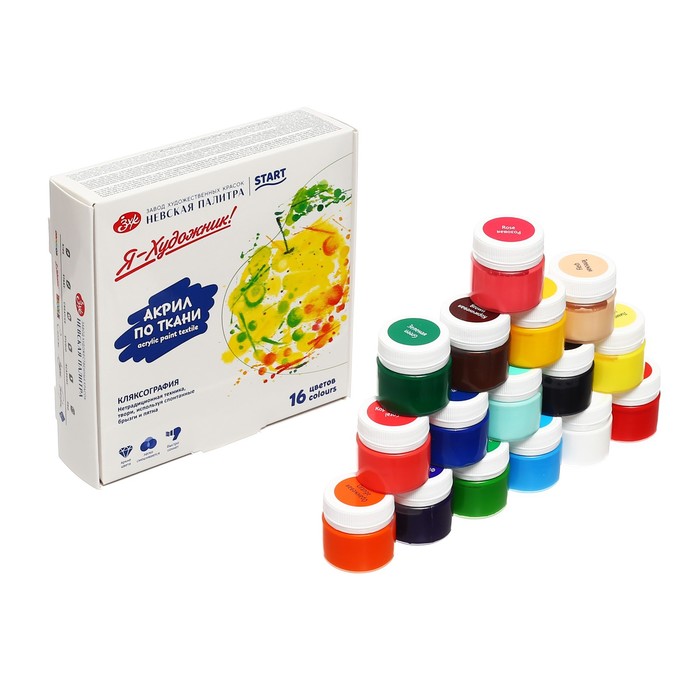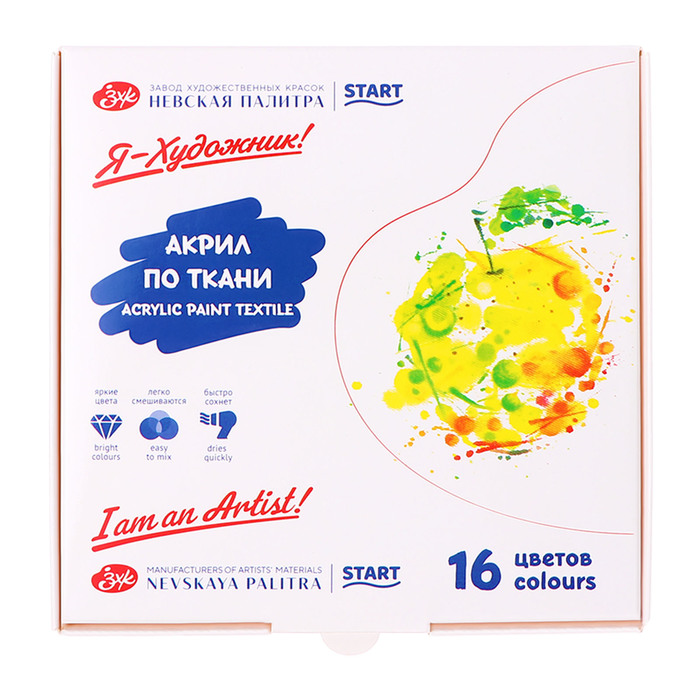 Краска по ткани, набор 16 цветов х 15 мл, ЗХК "Я - Художник!", акриловая на водной основе (228411819) — Характеристики
