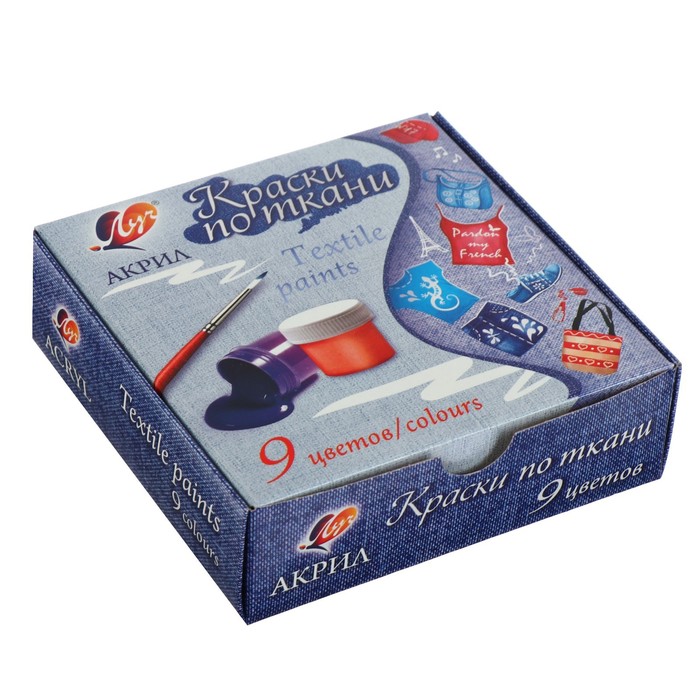 Краска по ткани, набор 9 цветов х 15 мл, Луч, акриловая на водной основе
