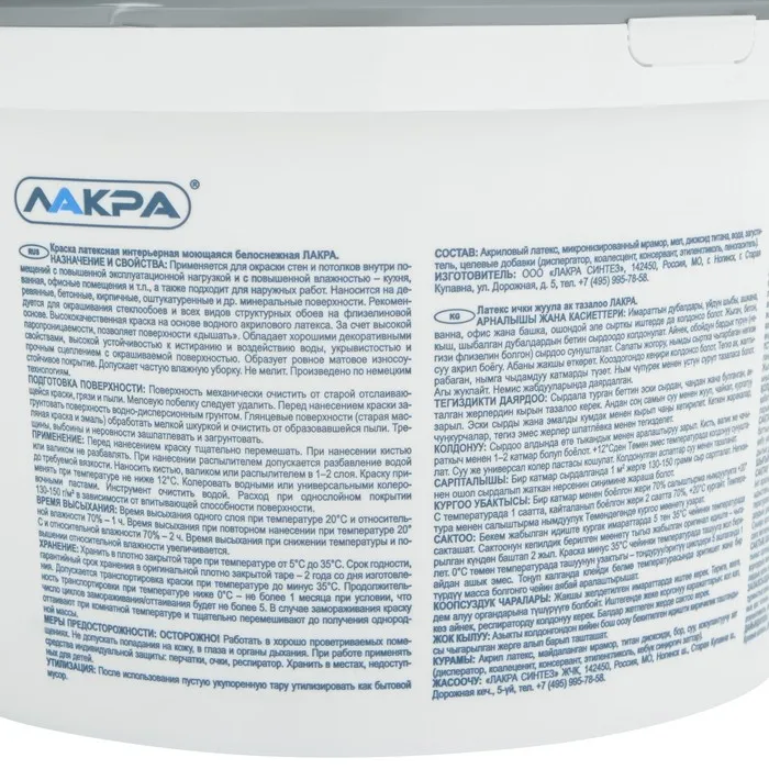 Краска водно-дисперсионная «ЛАКРА», латексная моющаяся, 14 кг — Характеристики