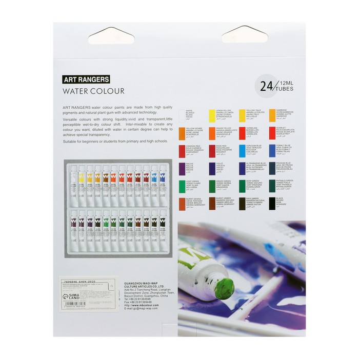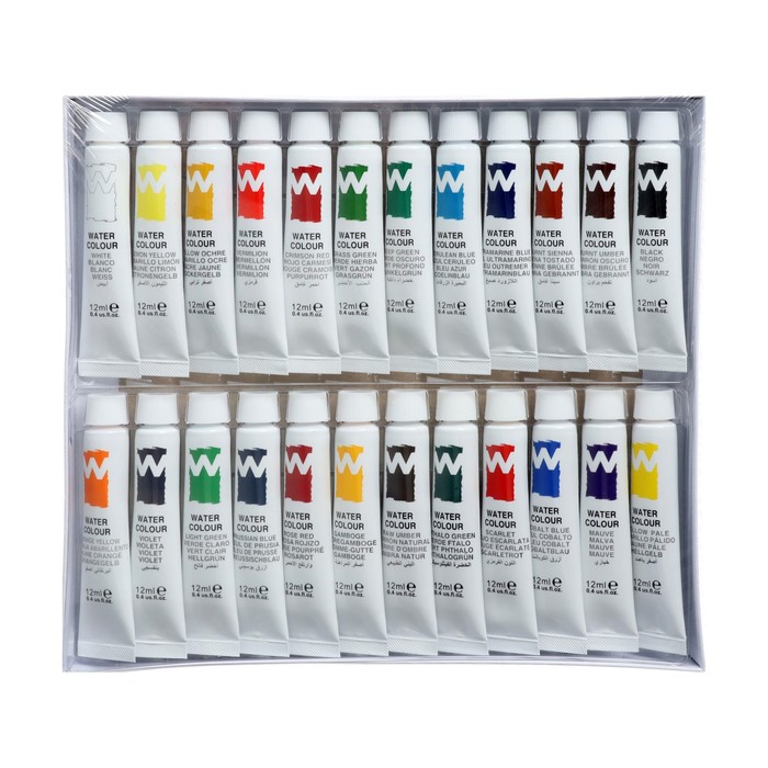 Краски акварельные 12 мл, в металлической тубе, в картонной коробке, 24 цвета — Характеристики