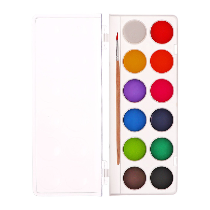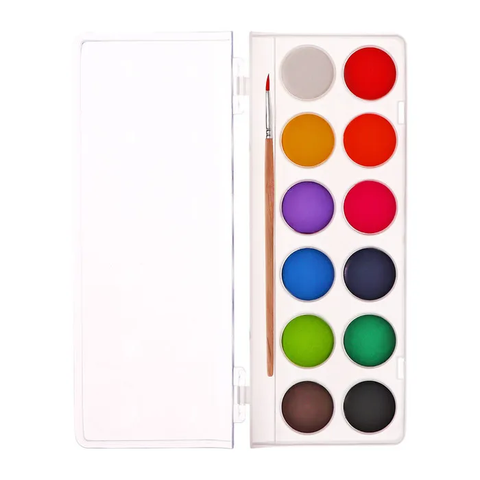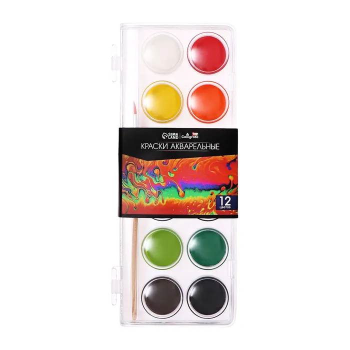 Акварель Calligrata, 12 цветов, разработана с учетом рекомендаций педагогов. Идеально подходит для занятий рисованием в детском саду, школе и дома. Яркие, чистые цвета развивают фантазию и интерес к творчеству. Акварель легко смывается с рук, отлично смешиваются между собой и позволяют создать множество оттенков, обеспечивают однородное окрашивание. Краски быстро высыхают и не портятся со временем. Безопасны для детей, нетоксичны. Выпускаются в пластиковом пенале с отделением для кисточки. Упаковка обладает компактными размерами и легким весом. диаметр кювета 28 мм.