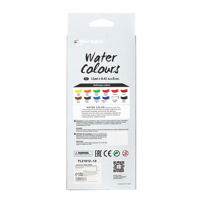 Краски акварельные 12 цветов в металл тубе 12 мл в картонной коробке — Характеристики
