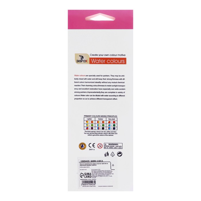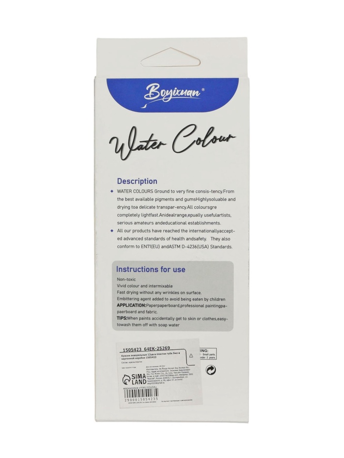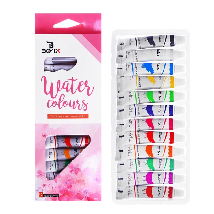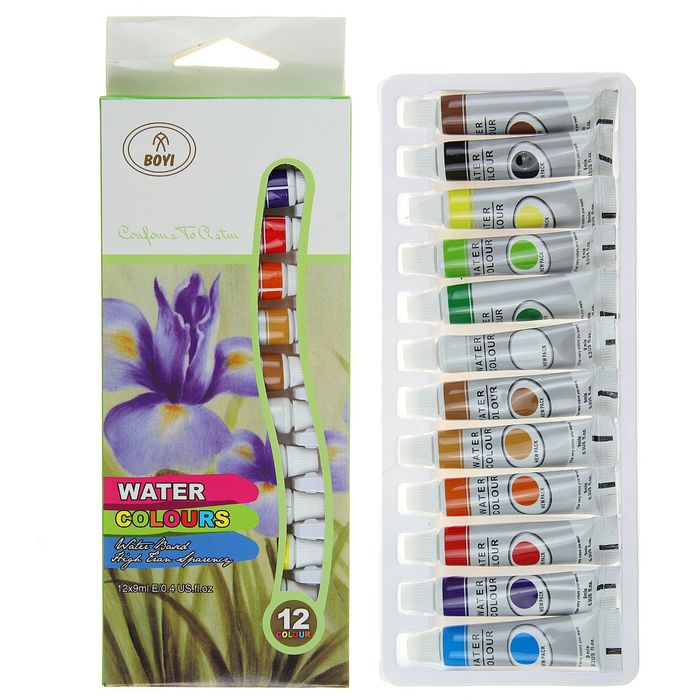 Краски акварельные, 12 цветов, в пластиковой тубе, 9 мл, в картонной коробке — Характеристики